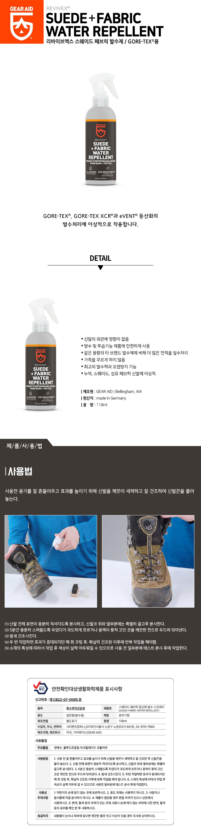 | »óǰ¸í : [ReviveX] ½º¿þÀÌµå ÆÐºê¸¯ µî»êÈ ¹ß¼ö ½ºÇÁ·¹ÀÌ / GORE-TEX¿ë | | Á¦Á¶È¸»ç : GearAid